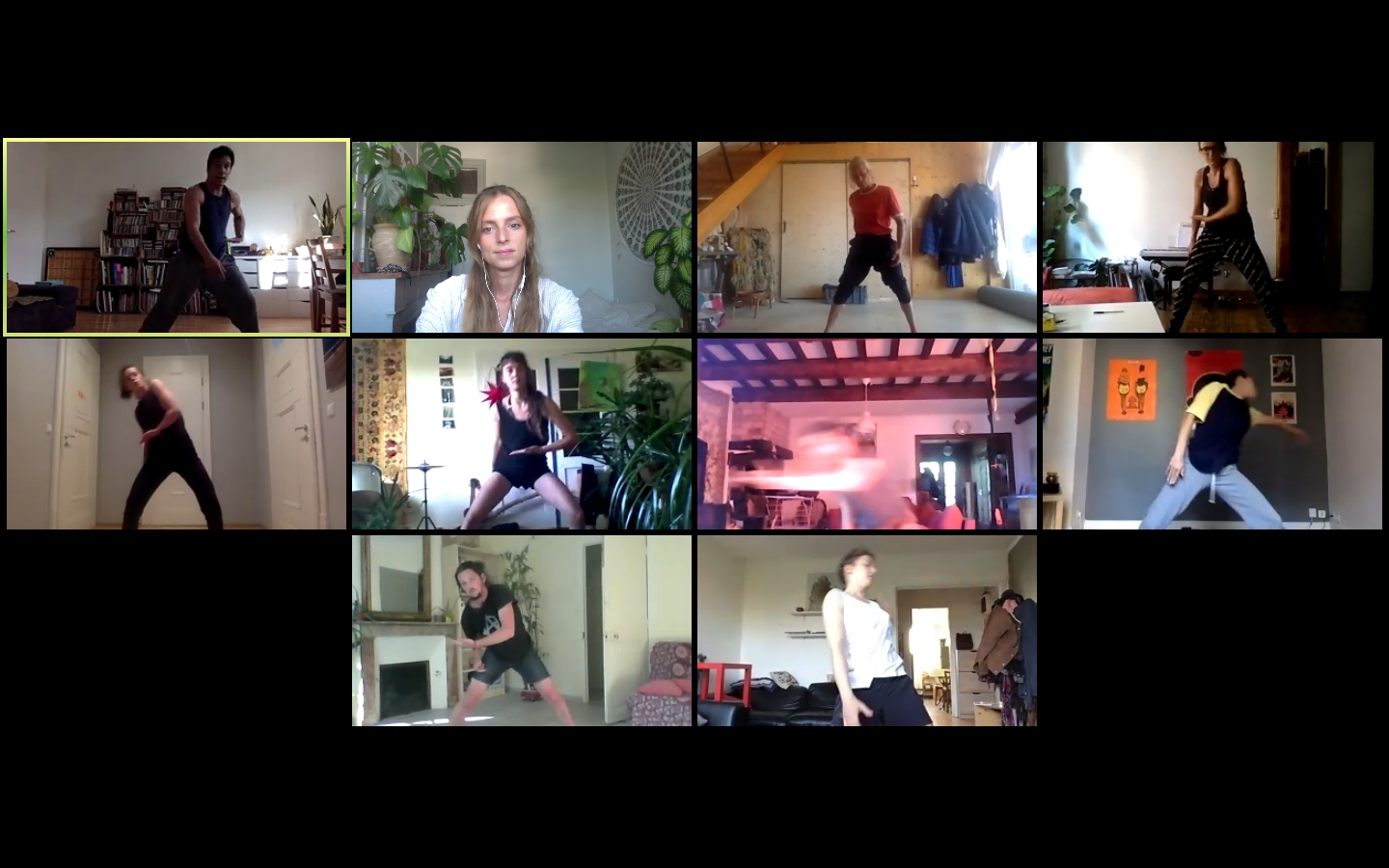 Cet échange de pratique artistique (initialement prévu dans le cadre de la Biennale de la Danse de Lyon) a réunit des jeunes artistes (théâtre, danse, cirque) avec une bonne condition physique de France, d’Allemagne et de Catalogne pour une semaine d’exercices physiques chaque matin, sur zoom.