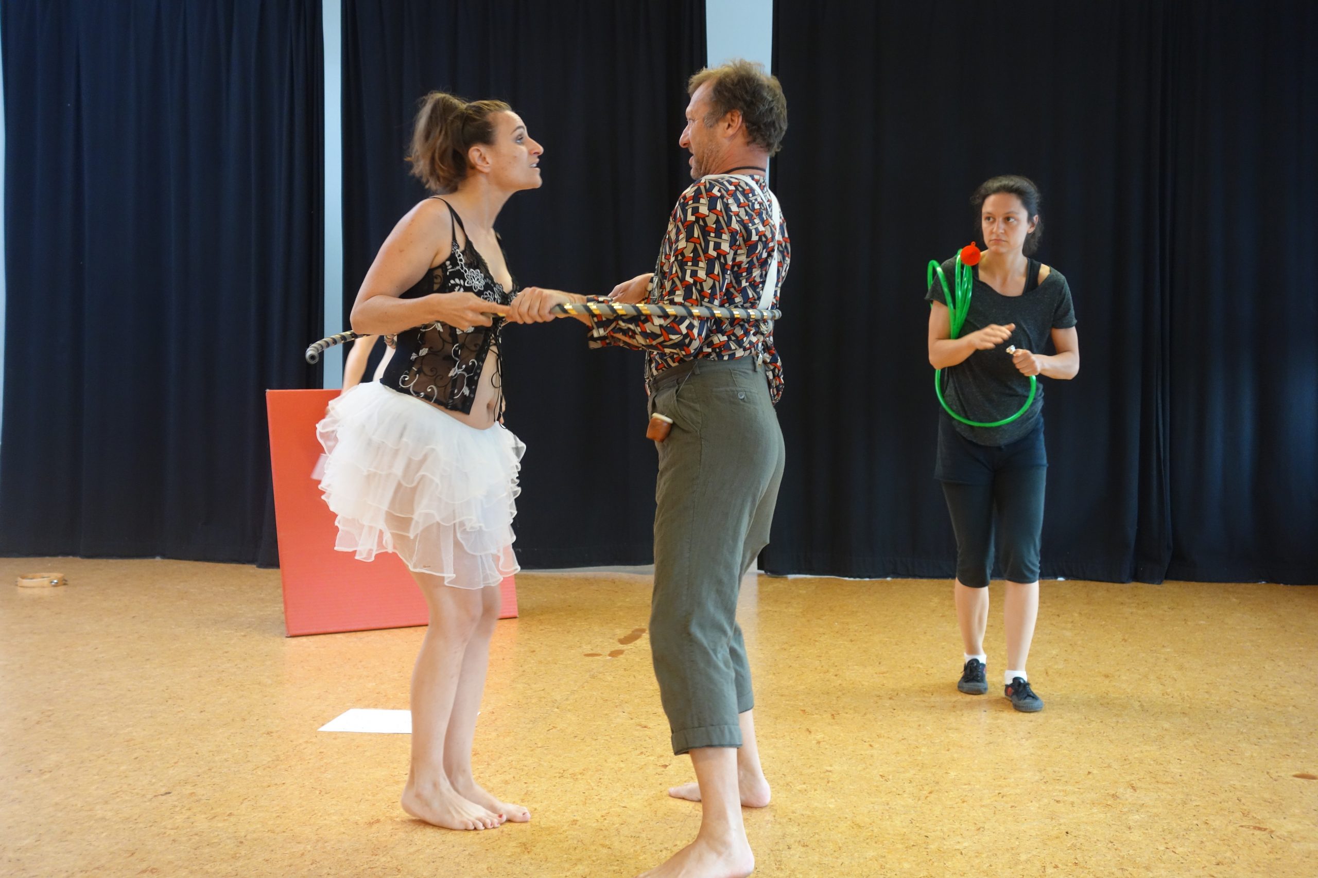 Lucie Betz et Maja von Kriegstein inviteront les participants à plonger dans une recherche autour du corps et du son, avec pour but le renforcement de la présence scénique. Improviser, s’échauffer en rythme, donner et prendre le focus, se montrer, se cacher… Lors de cette recherche, ils utiliseront des costumes, des instruments traditionnels et expérimentaux ainsi que des objets du quotidien.