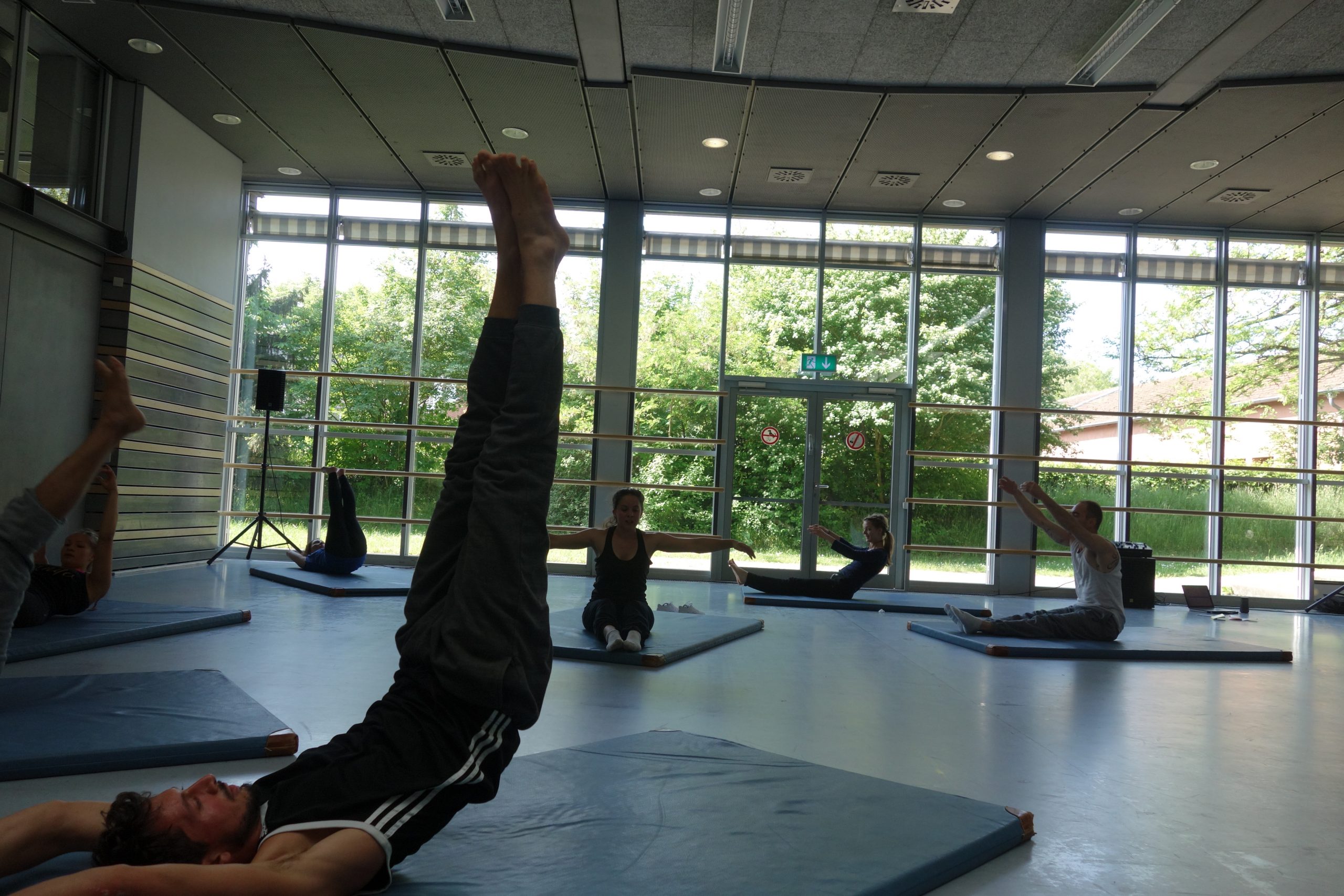 Durch Bewegungstraining, Übungen zu Hebefiguren und dem Kontakt zu Partner und Gruppe hatten die Teilnehmenden Gelegenheit, verschiedene Facetten der Akrobatik kennenzulernen und im Schnittpunkt von Zirkus, Tanz, Performance und physischem Theater zu arbeiten.