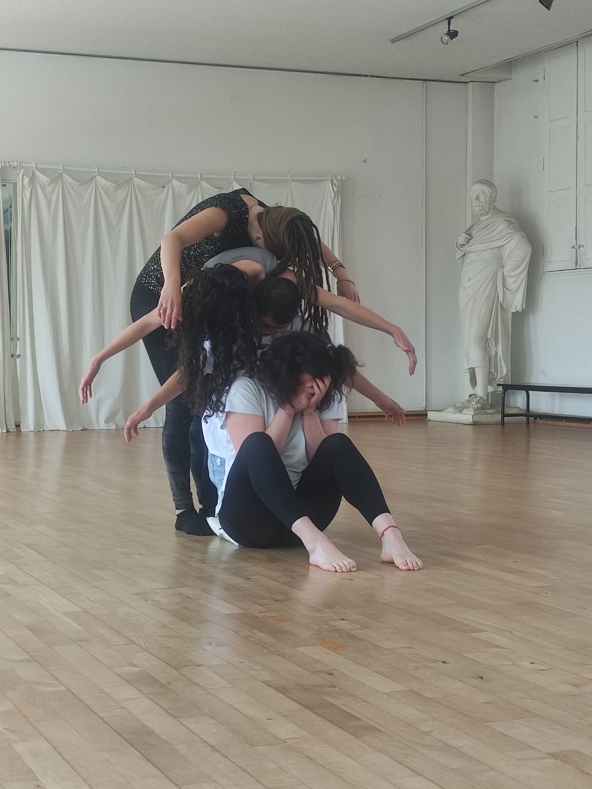 Die künstlerischen Leiter:innen luden die Teilnehmenden ein zu erforschen, wie einzelne Körperteile zu Figuren werden und miteinander in stummen Dialog treten können. Durch technische Übungen lernten die Teilnehmenden die einzelnen Körperpartien zu ent-synchronisieren, ihnen so ein Eigenleben zu geben und Szenen zu entwickeln, in denen sie die Protagonist:innen sind: Ein Gespräch unter Füßen, ein Streit zwischen zwei Rücken, eine Dreiecksbeziehung zwischen Händen, …