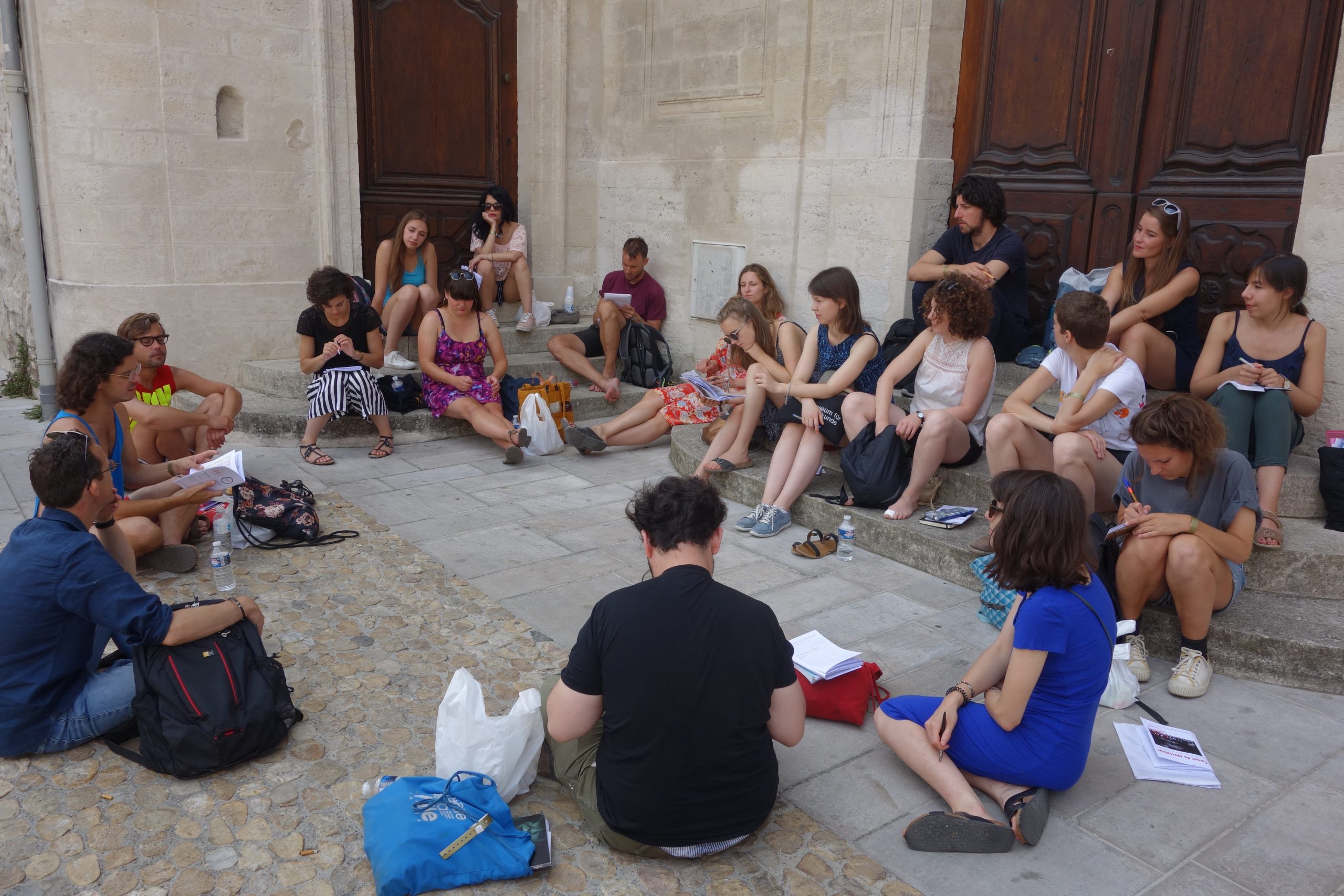 Während des Workshops hatten die Teilnehmenden die Gelegenheit, im Rhythmus des Festivals zu leben und eine originelle und breitgefächerte Auswahl an Theaterstücken zu entdecken. Mathieu Huot und Thomas Kellner begleiteten die Teilnehmer:innen mit Textlektüren und vertiefenden Einblicken in ausgewählte Themen bei der Diskussion und Analyse der besuchten Aufführungen, sowie bei Treffen mit Künstler:innen des Festivals. Zudem boten sie einige praktische und für alle zugängliche Übungen an.