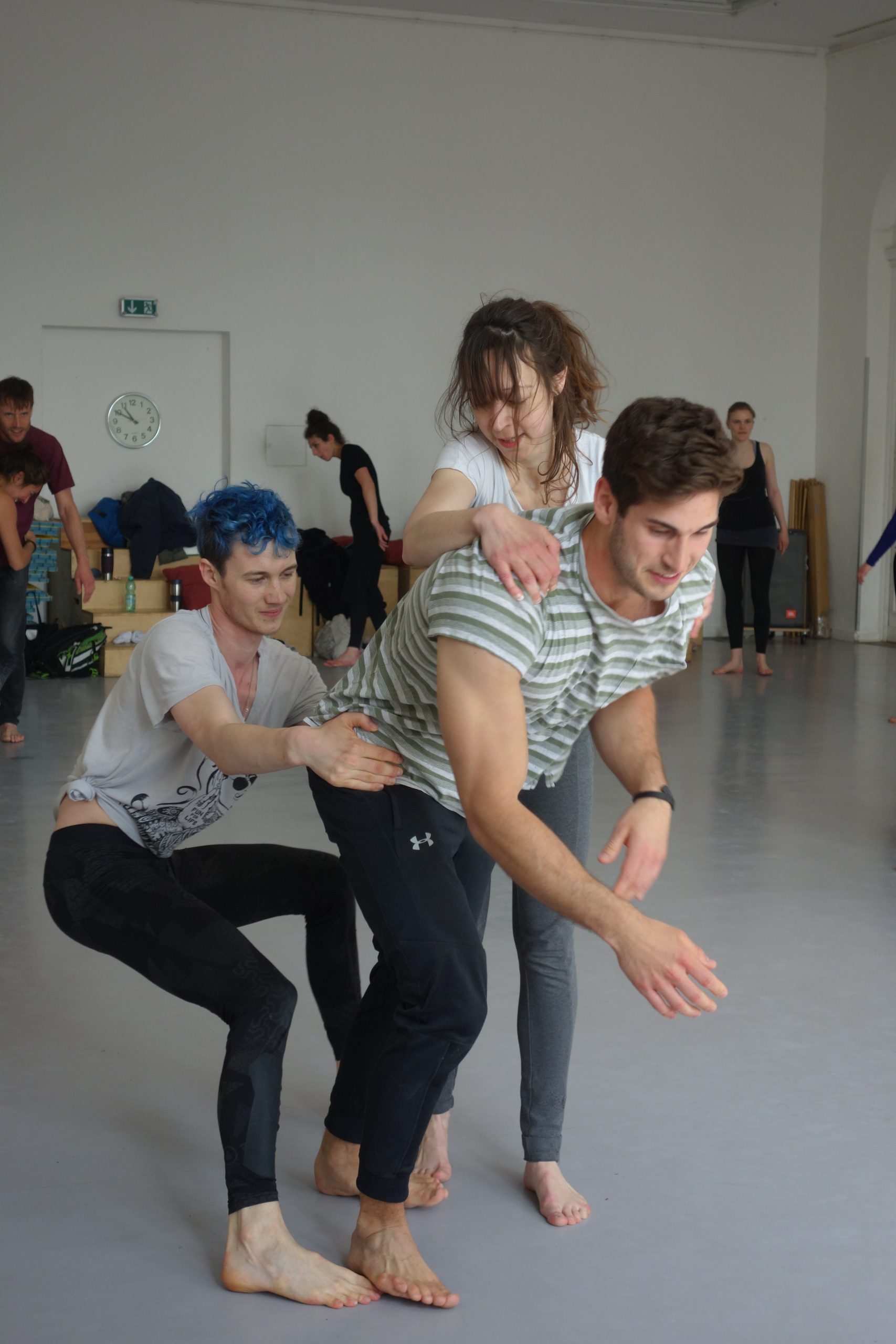 Die Teilnehmenden wurden erneut von Spezialist:innen verschiedener europäischer Schulen begleitet, mit denen sie weiter an Techniken wie Mime nach Marceau, „Mime Corporel“ nach Decroux, Biomechanik nach Meyerhold und weiteren zeitgenössischen Formaten arbeiteten.
