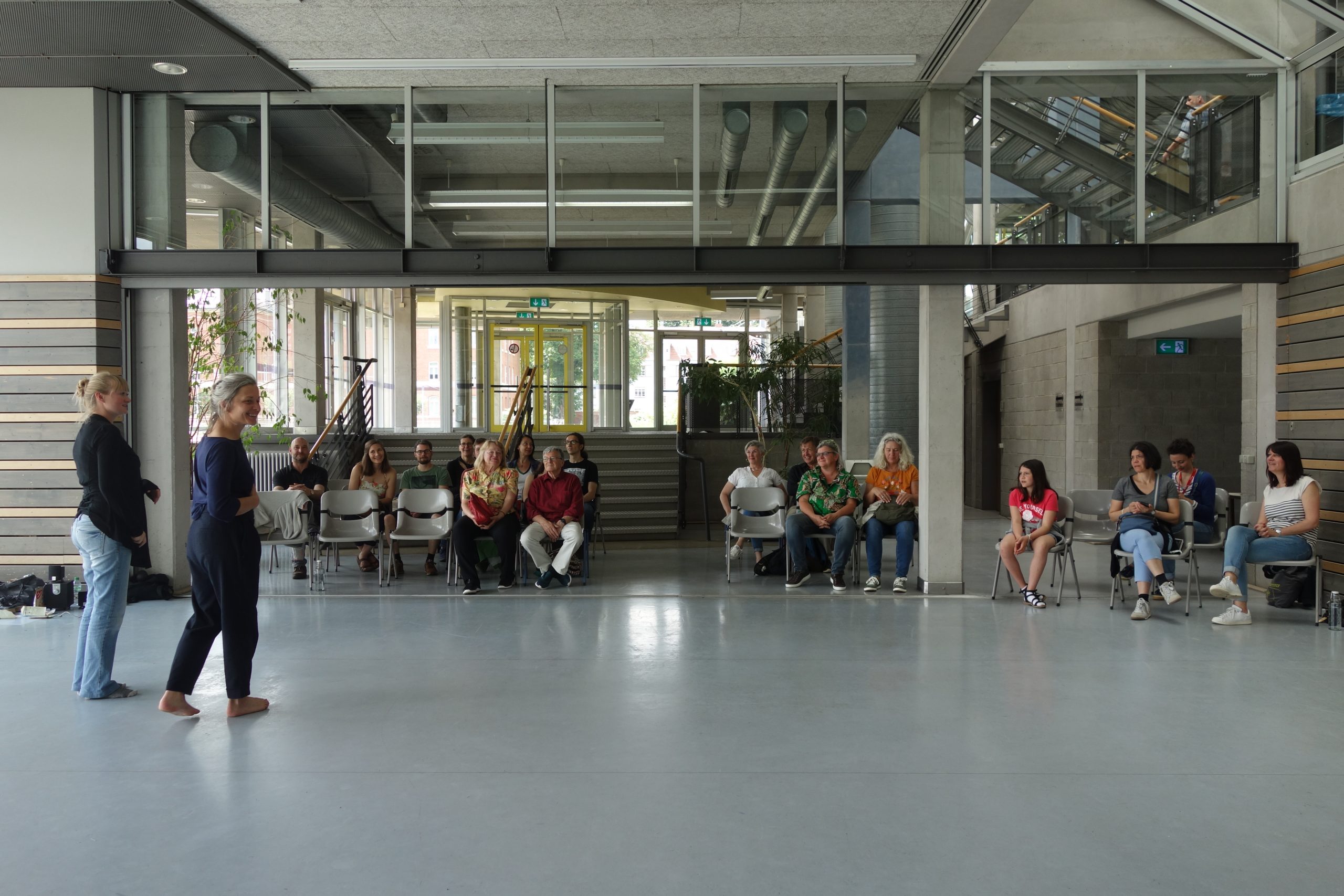 Die Teilnehmenden wurden dabei durch einfache Fragen geleitet: Was versetzt mich in Bewegung? Bin ich in einer permanenten Transformation? Wie gestalte ich meine Arbeit im Augenblick und darüber hinaus? Durch Austausch und Dialog wurde zudem die persönliche Motivation für das Schreiben akrobatischer und choreographischer Szenen hinterfragt.