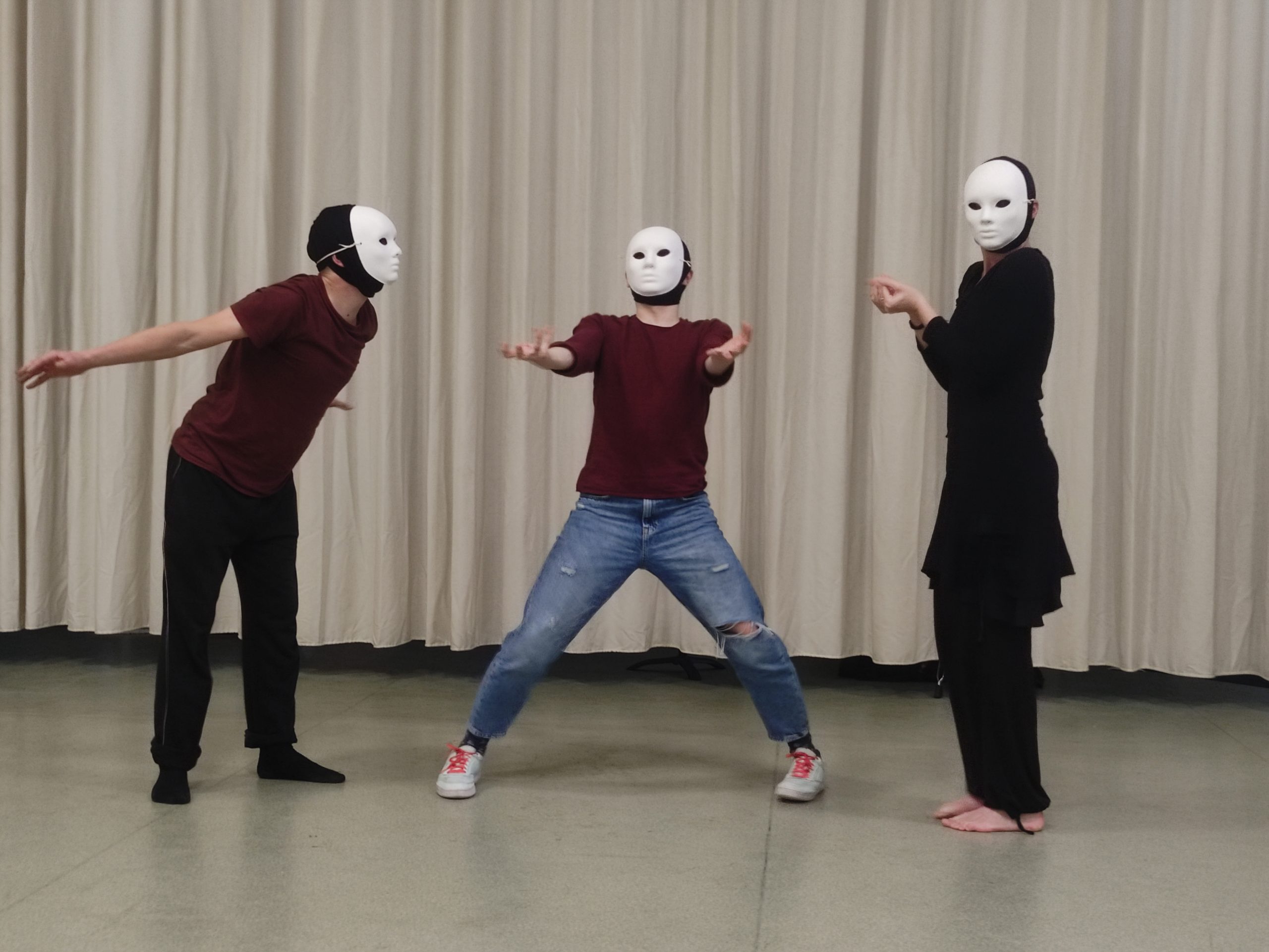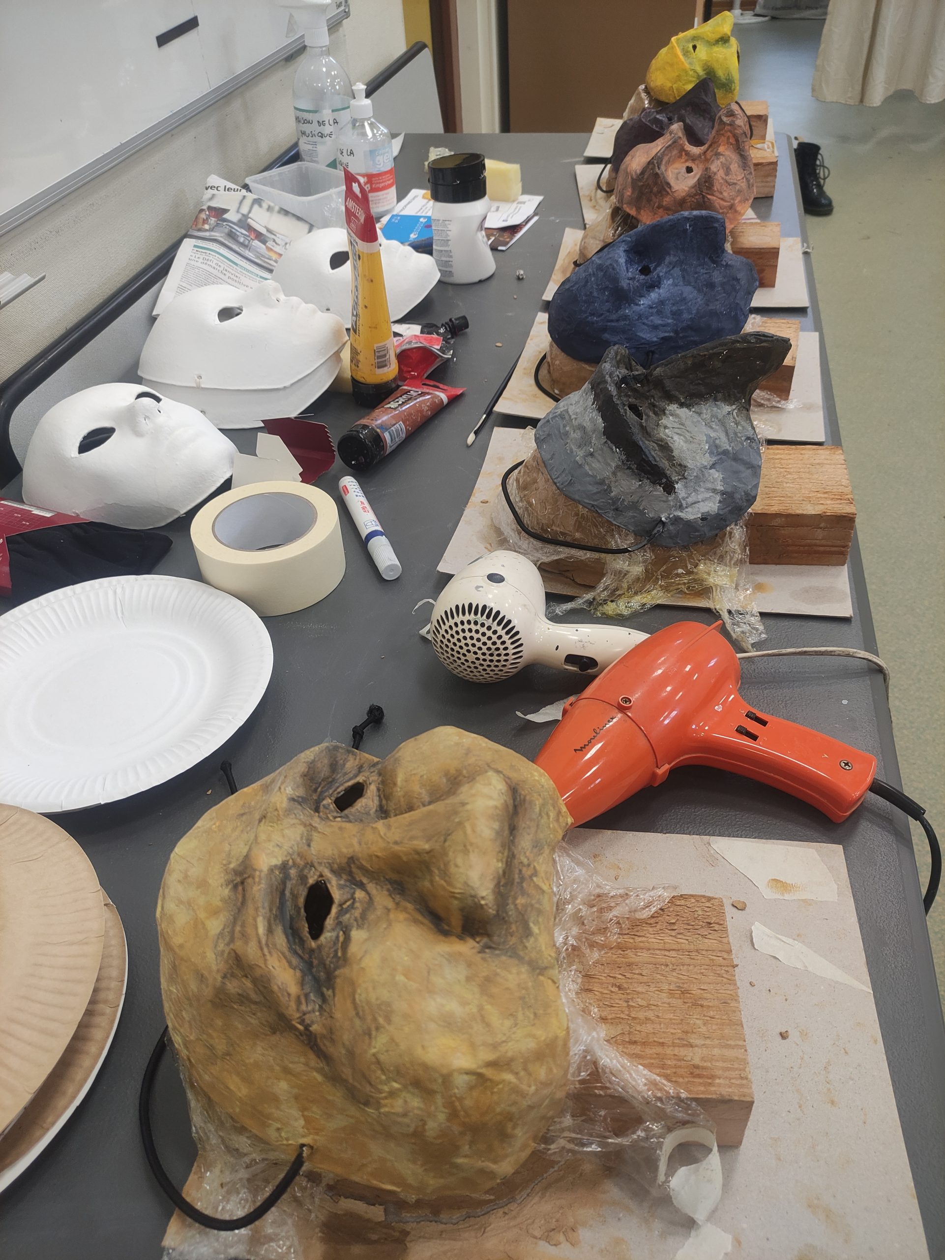 Ce stage avait pour objectif d’explorer le jeu masqué, de la fabrication au jeu. Il s’agissait tout d’abord de réaliser son propre demimasque, à partir d’un moule en terre, en y apposant des couches de papier, pour donner forme au masque. D’autre part, les participant.e.s ont exploré les principes du jeu masqué, par des exercices d’improvisation sur le thème du mouvement et de la conscience du corps dans l’espace. Les stagiaires ont pu créer leur personnage, en passant de l’atelier à la scène, avant de les confronter les un.e.s aux autres, en leur donnant une voix, un corps, une vie, une histoire…