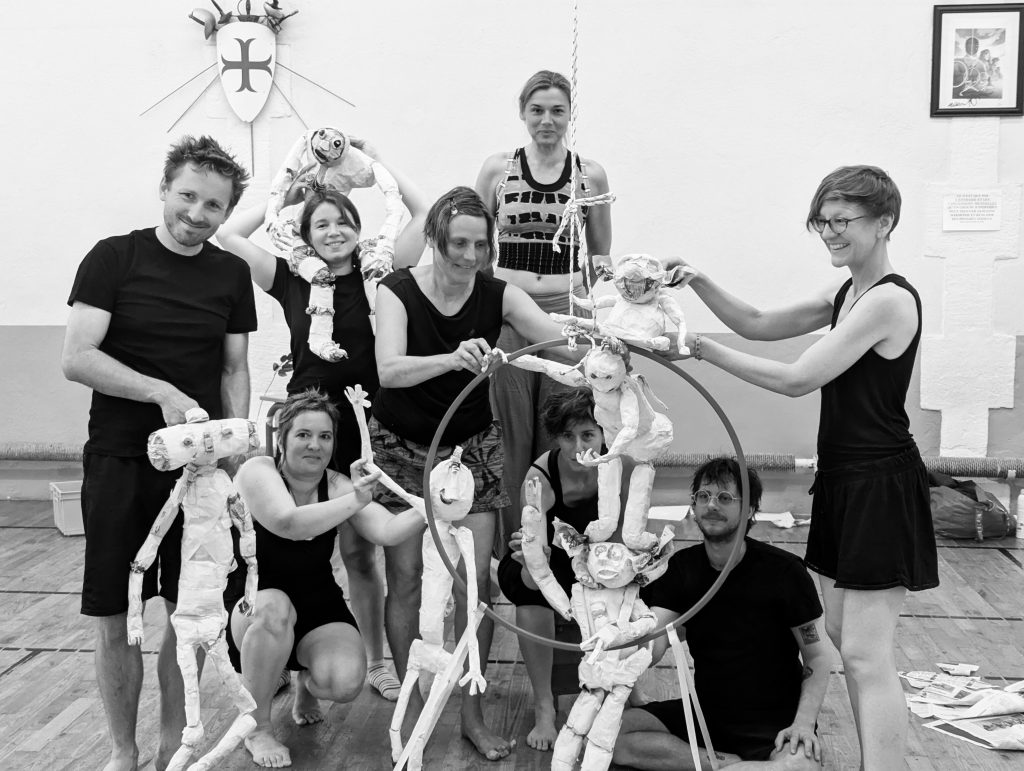 Le travail de recherche et d’exploration s’articulait autour de plusieurs axes : la matière et sa mécanique, anatomie et étude du mouvement, le corps humain: ses possibilités et limitations, et le corps-marionnette.