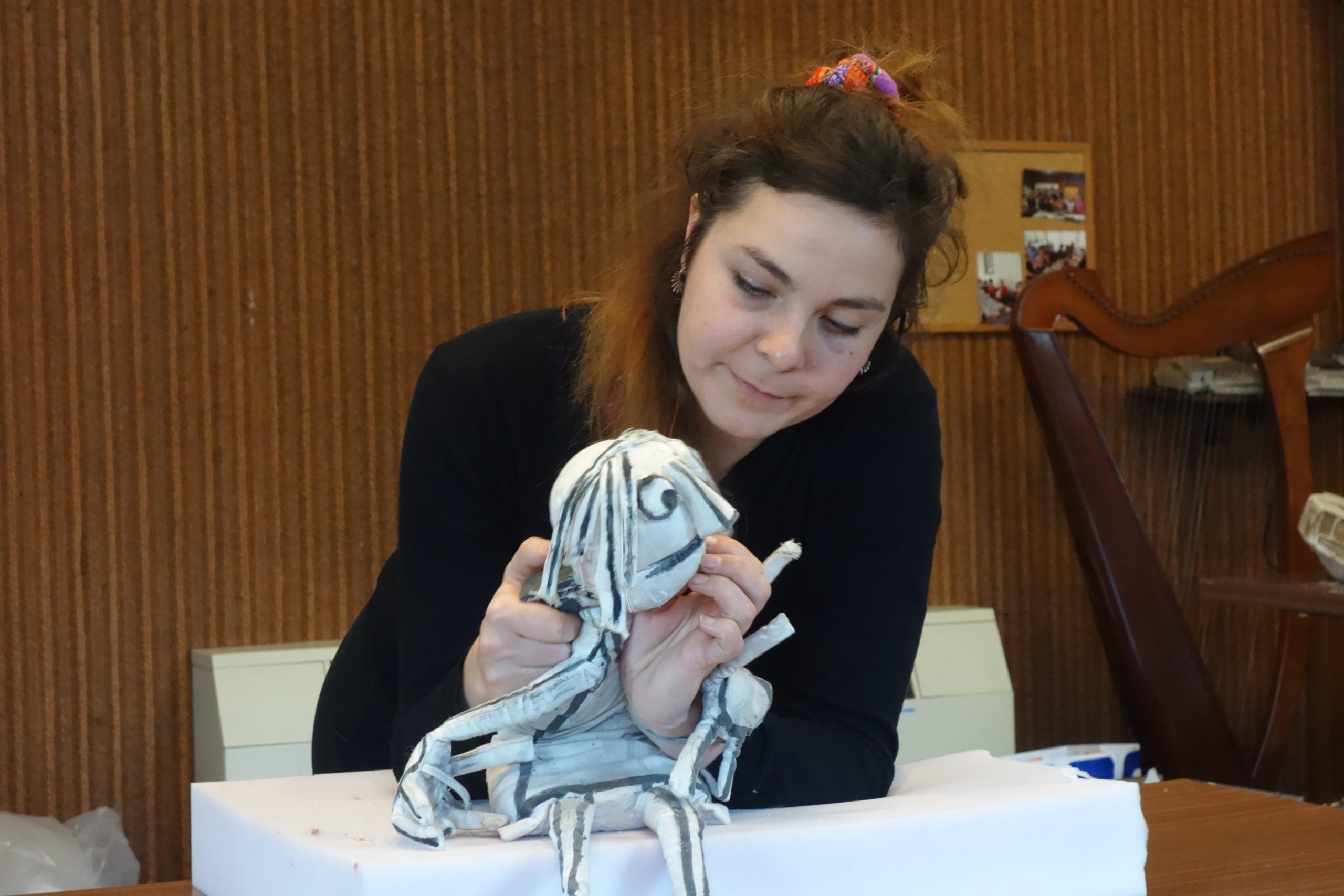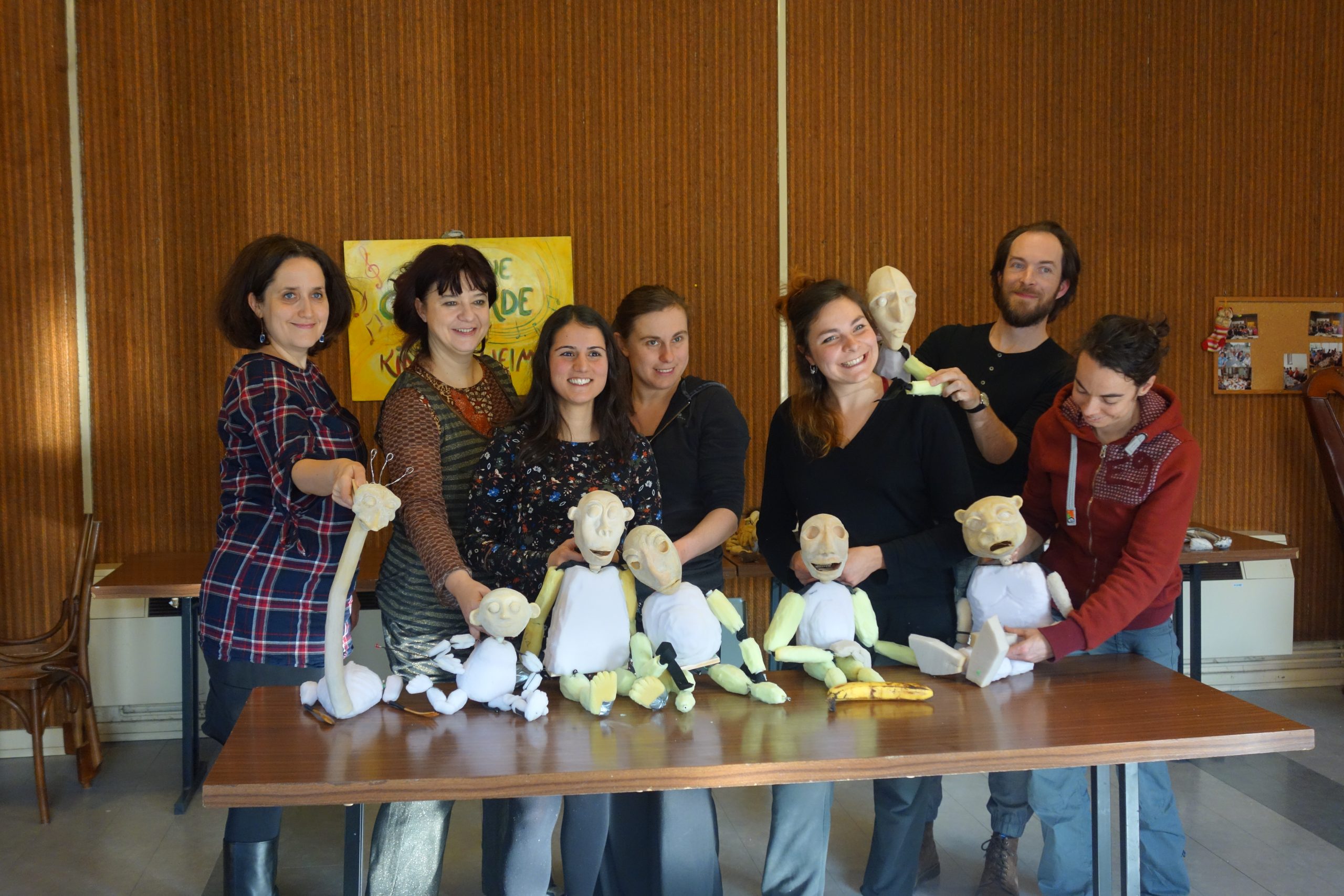 Ce stage avait pour objectif d’explorer différentes techniques liées à la marionnette, du point de vue du plateau (technique de manipulations, dissociation, coordination à plusieurs manipulateurs et conscience du corps dans l’espace) et du point de vue de l’atelier (exploration plastique et technique de construction de marionnettes).
