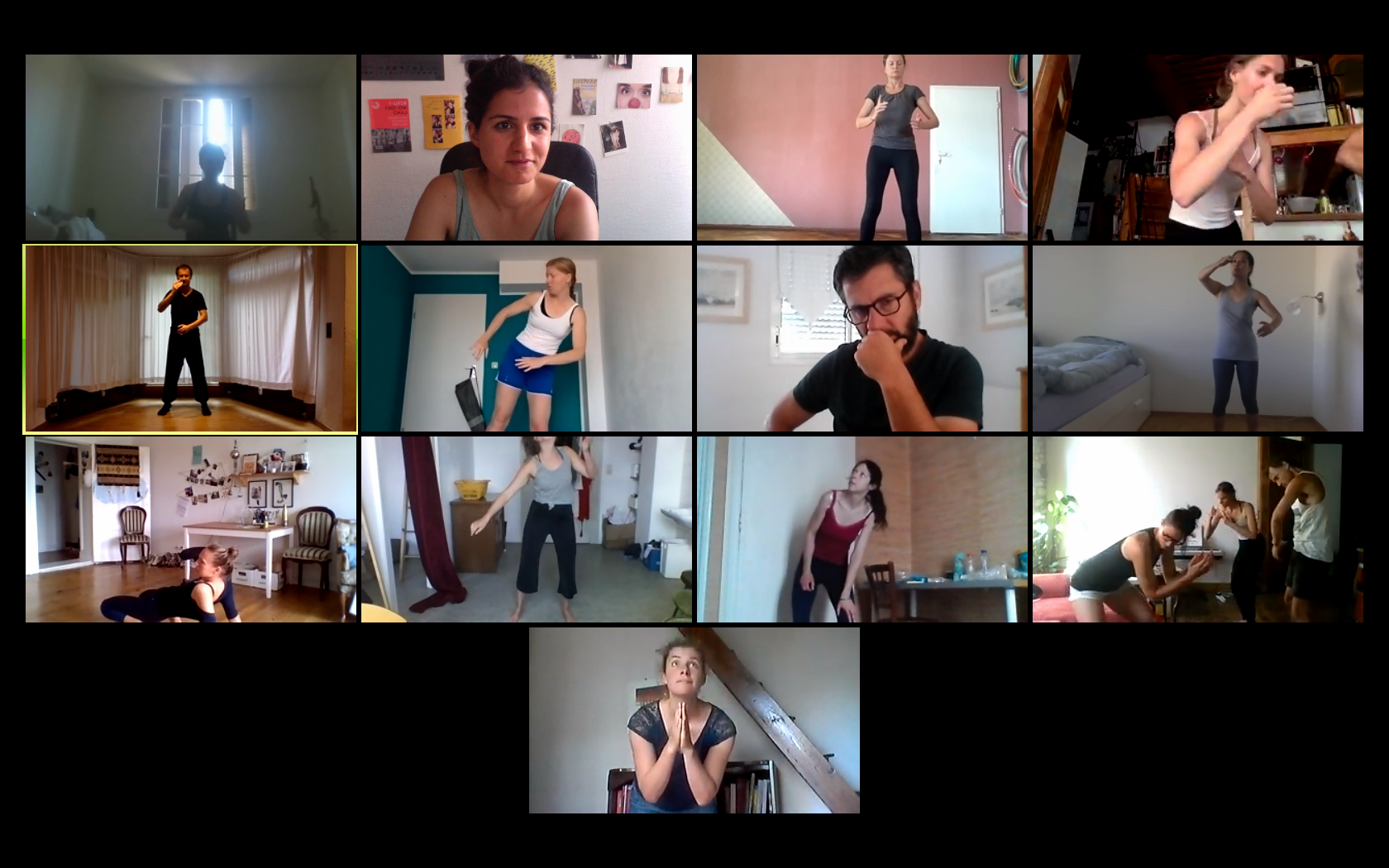 Suite à l’annulation du festival MIMOS à Périgueux, la Plateforme de la jeune création franco-allemande et le ITI / Mime Centrum Berlin ont proposé un échange virtuel d’une semaine, au dates prévues pour le festival MIMOS. Cet échange a réunit des jeunes artistes en situation précaire (théâtre, danse, mime, marionnettes…) de France et d’Allemagne, qui s’intéressent à un travail autour de la présence scénique, de l’intensité du jeu et de l’expressivité.