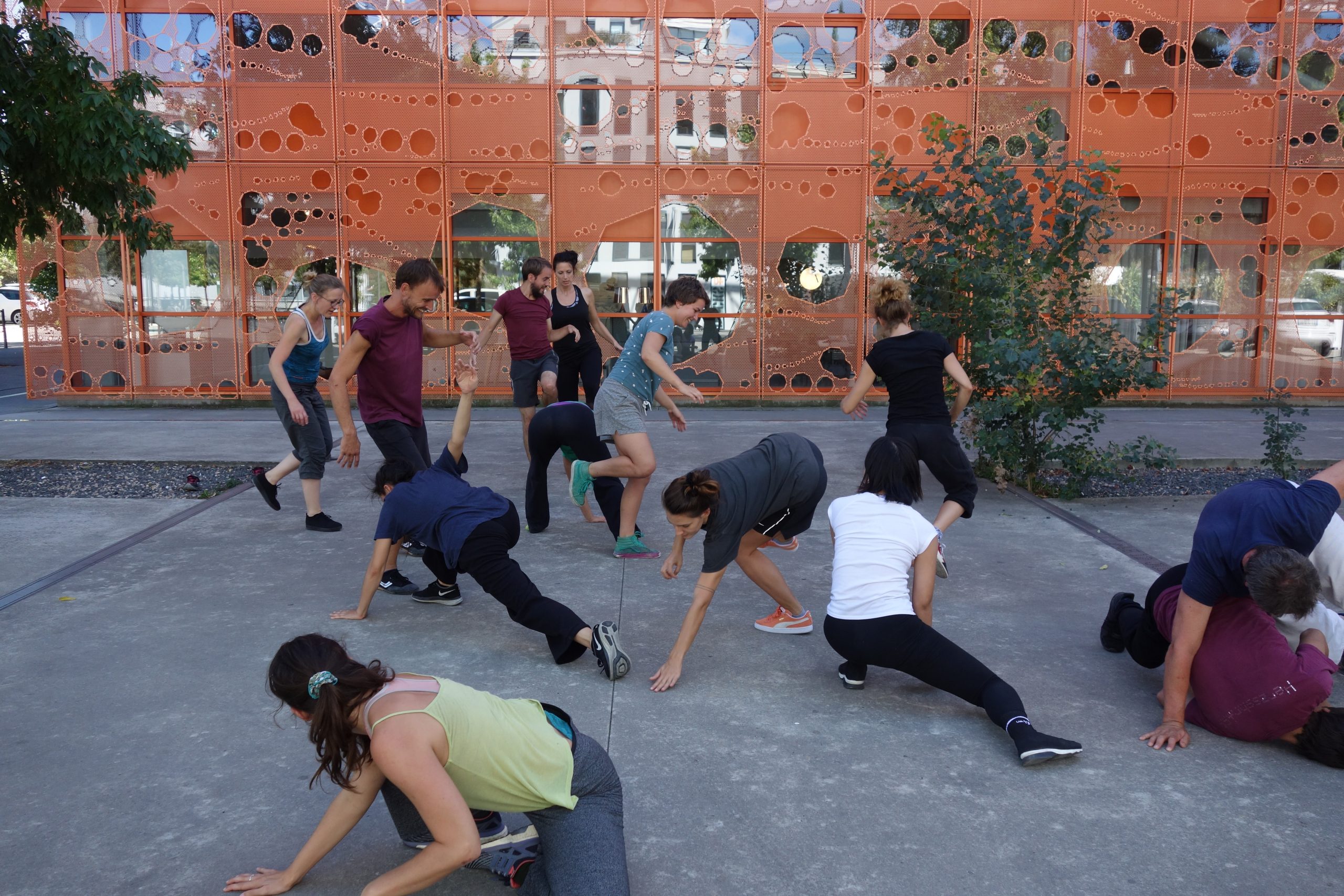 Ce stage s’adressait à des jeunes comédiens, danseurs, circassiens et vidéastes ayant une bonne pratique corporelle et venant de France, d’Allemagne et de Catalogne. Ce stage proposait une exploration du mouvement dans l’espace public, à travers les regards croisés et la rencontre d’un chorégraphe, d’un metteur en scène et d’un réalisateur. L’objectif de la semaine était de développer une recherche en petits groupes autour de l’image du corps dansant dans la ville. Les participant·e·s ont vécu cette semaine à Lyon au rythme de la Biennale de la Danse, en découvrant de nombreux spectacles invités.