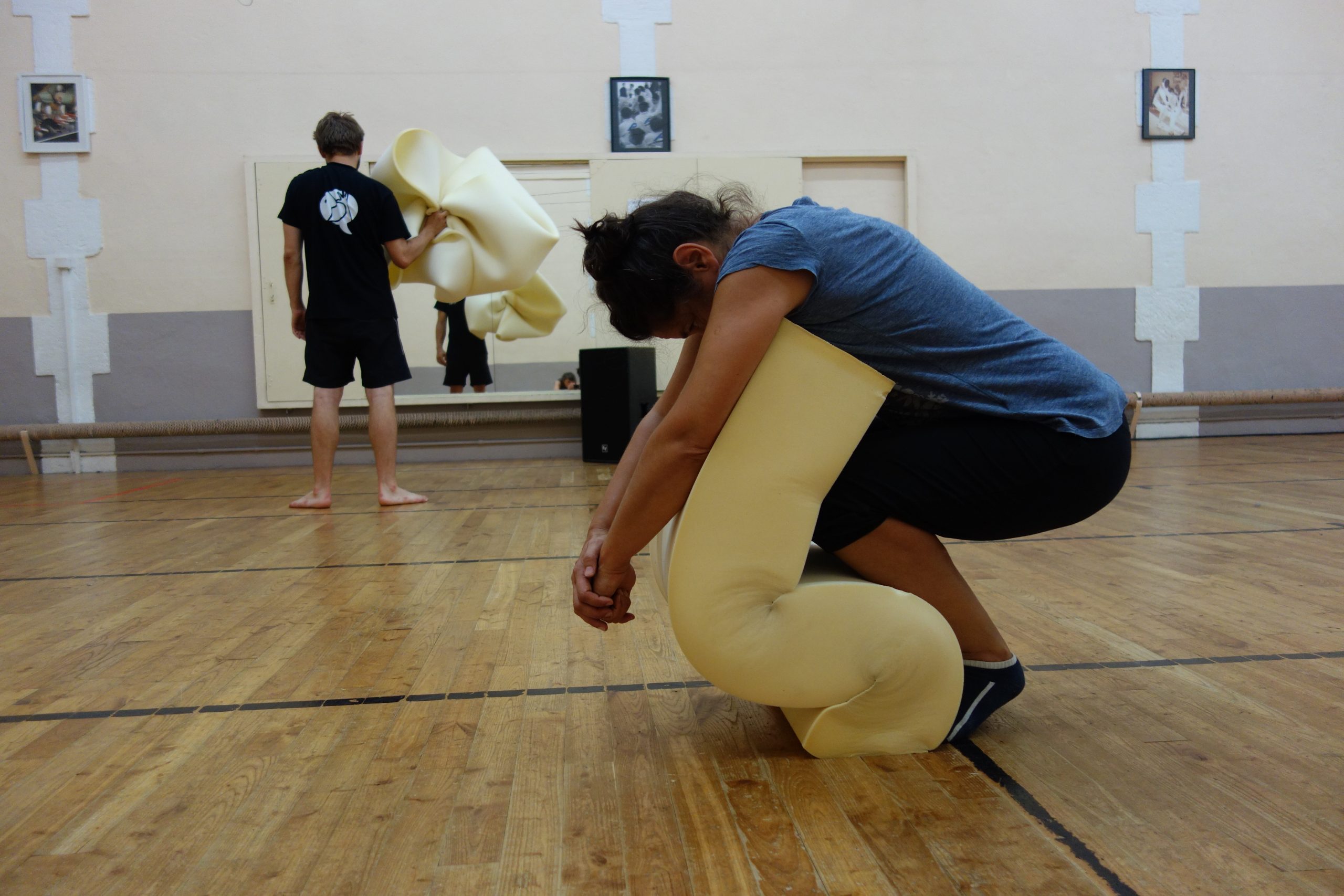 Le stage a proposé un travail du corps en relation avec différents matériaux bruts, objets et corps/matériau autour de la notion de résistance.
