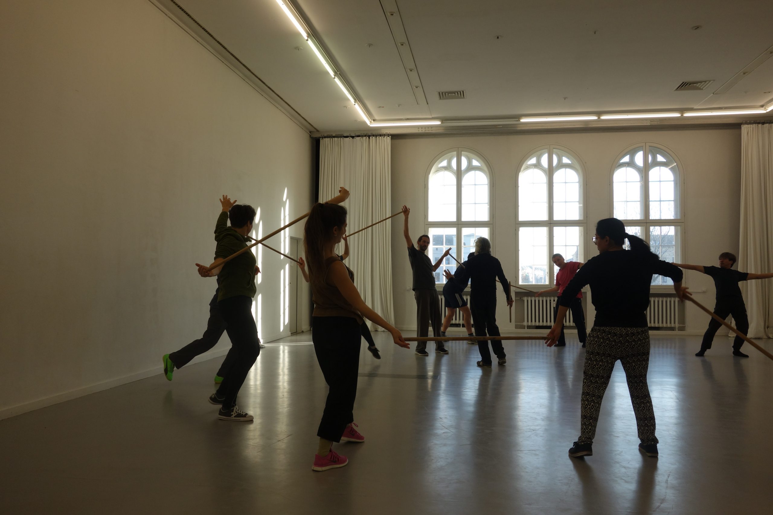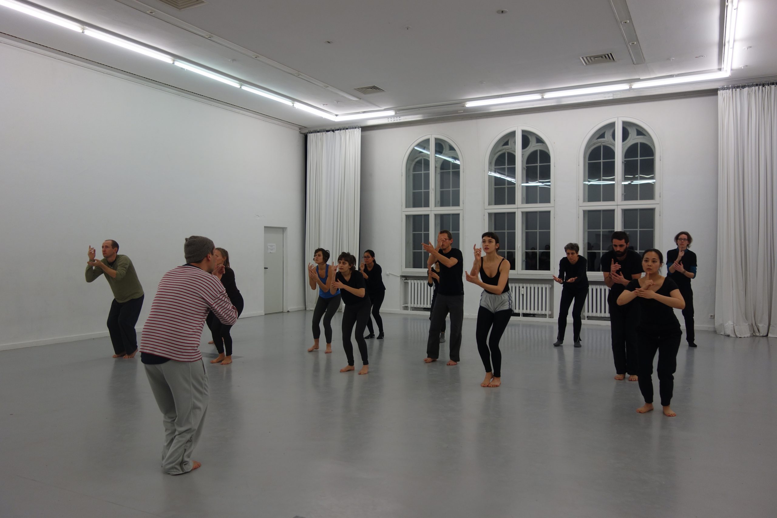 Ce stage s’adressait aux anciens étudiants de l’école de théâtre La Scène sur Saône à Lyon, à des étudiants de l’école de théâtre Studiobühne Siegburg en Allemagne et à des comédiens allemands, curieux d’approfondir leur connaissance du théâtre gestuel. Ils ont eu l’occasion de rencontrer et d’apprendre de spécialistes de différentes écoles européennes de théâtre du mouvement, et ainsi de confronter les conceptions du mime selon Marceau, le mime corporel développé par Decroux, la biomécanique de Meyerhold et d’autres techniques contemporaines…